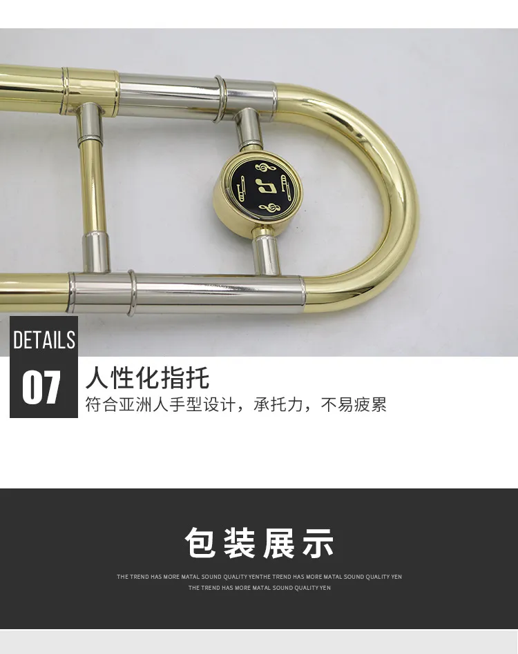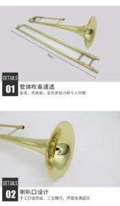 This B♭ trombone features a classic gold lacquer finish and precision brass construction, delivering a full, warm tone with smooth slide action. Designed for music schools, band programs, and distributors, it is ideal for students, beginners, and ensemble performance.
